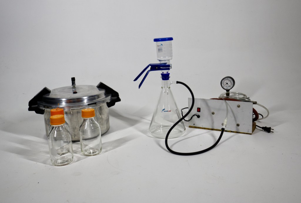 I’ll be using two vacuum filter apparatus with 20 micron filters that I’ll replace every 1000 mL.